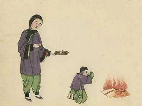 初一当晚,把纸袋供在堂上祭奠一番,而后拿到门外焚化,
